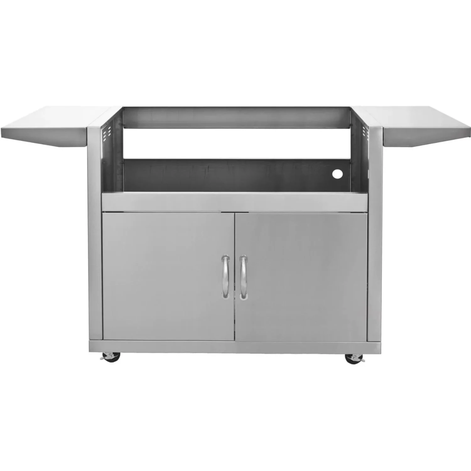 This Blaze stainless steel grill cart is specifically designed to house the Blaze 40-Inch gas grill. The stainless steel construction ensures long-lasting durability for years of outdoor use and the four heavy-duty caster wheels allow you to easily relocate the grill whenever necessary. The two stainless steel side shelves keep your BBQ tools at hand and provide a convenient work area while you cook. The Blaze grill cart also features two front doors with rounded handles to access the cabinet below the grill where you can store your propane tank, grill cover, and BBQ accessories.