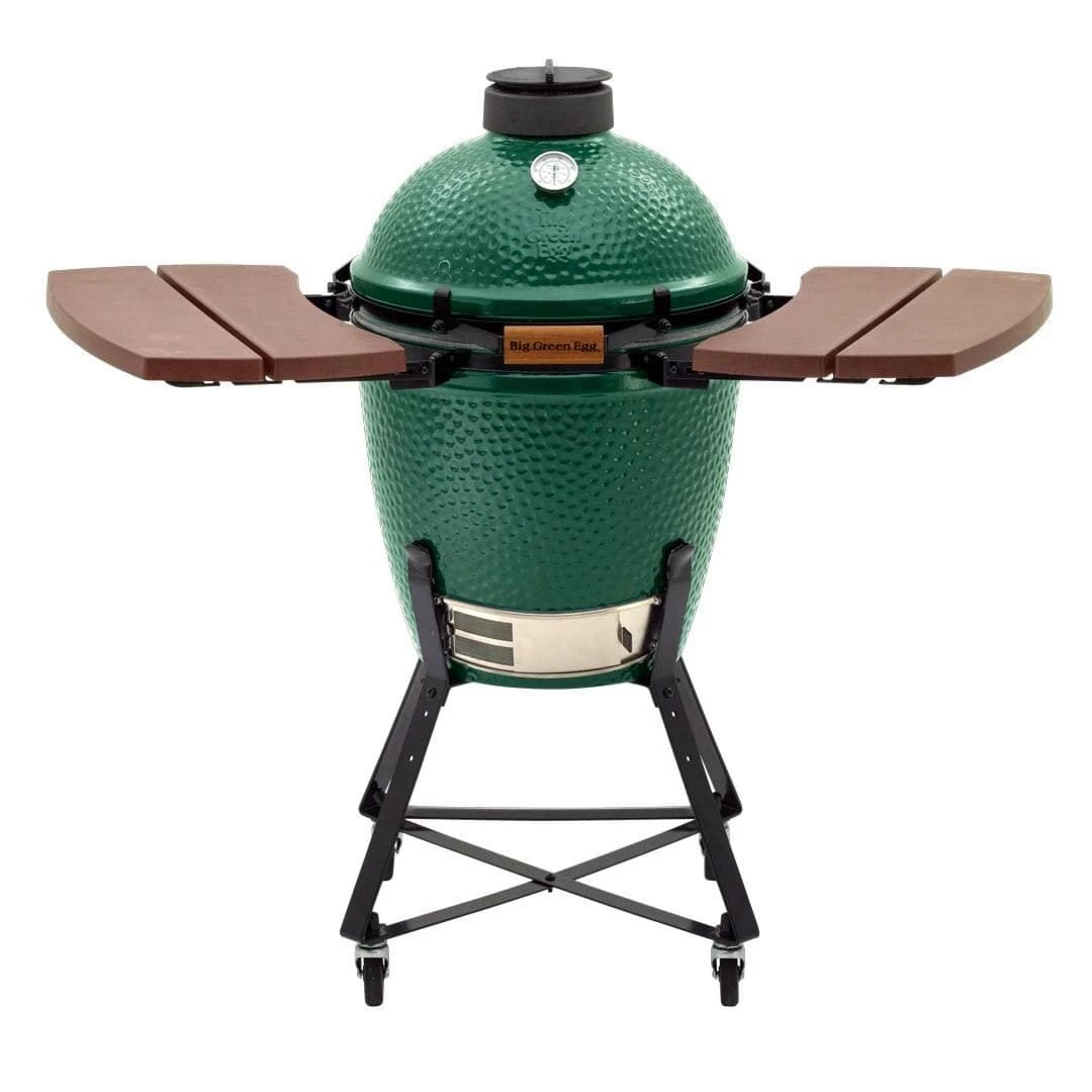 Composite Folding Side Shelves for an EGG in a Nest EGG Mates® is a simple and convenient addition to Big Green Eggs, providing a working and serving area right where you need it. The new design Big Green Egg Composite Mates features a non-slip textured surface, wider side profile, subtle wood-grain detailing, and an attractive Big Green Egg logo. Providing an unmatched working and serving area for an EGG in a Nest. The Composite Mates are engineered to offer significant improvements over wood or ‘plastic’ materials.