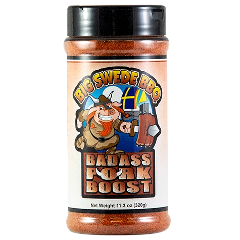 Big Swede BBQ Bad Ass Pork Boost will give your pork a perfect balance between sweet and heat. It is a serious competition-grade rub that will have people eating high off the hog and porking out on that delicious swine, whether it is ribs, butts, steak, chops or a whole hog.