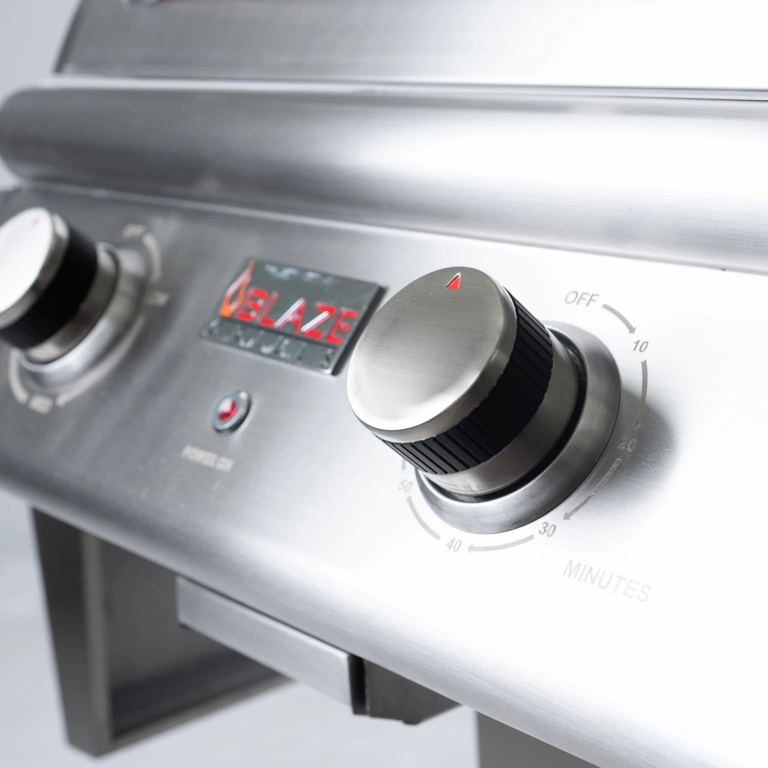 The Blaze Portable Electric Grill allows you to enjoy quality grilling in more places than ever. This 21-inch portable electric grill is built with a 304 stainless steel body and features a water-resistant design for safe use outdoors. The 274 square inch cooking surface reaches up to 749 degrees Fahrenheit and is evenly heated by a full-sized 1,500-watt heating element. 16-gauge 304 stainless steel flame tamers help prevent flare-ups, evenly distribute heat, and vaporize drippings for extra flavor. Heavy-duty 9mm triangular stainless steel cooking rods allow for greater heat transfer to create impressive sear marks. A removable warming rack lets you keep bread and other foods heated while you grill. The heating element has a hinged design and can be lifted out, while an easy pull-out drip tray collects drippings for easy cleanup. The 304 stainless steel grill hood is double-lined to protect the outer layer from heat discoloration, keeping your Blaze grill looking shiny and new for years of use. Adjustable feet allow for steady placement on uneven surfaces. Safety features include a built-in 60-minute timer with automatic shut-off, and a heavy-gauge 7.5-foot power cord with a built-in GFCI breaker. This electric grill must be plugged into a dedicated 15 AMP GFCI electrical outlet. This product is ETL certified.