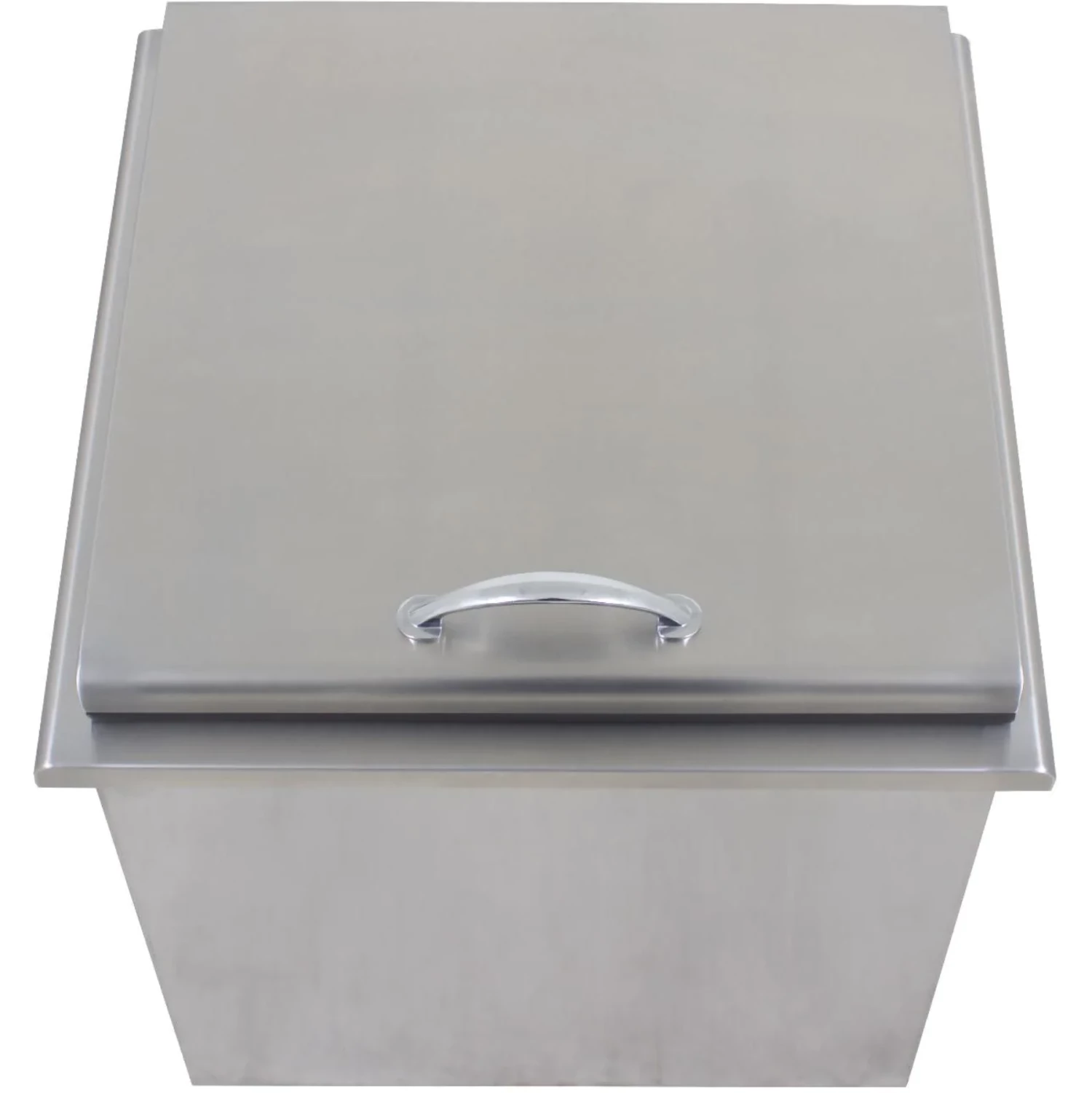 This Blaze ice bin cooler features commercial grade 304 stainless steel construction to withstand outdoor elements and a unique completely rounded bevel design that enhances strength and durability. The lid features a heavy-duty gasket which helps keep your beverages cold. This ice bin cooler is deep enough to accommodate bottles of wine, liquor, and other large bottles. Blaze outdoor components are the perfect storage solution for any outdoor kitchen!