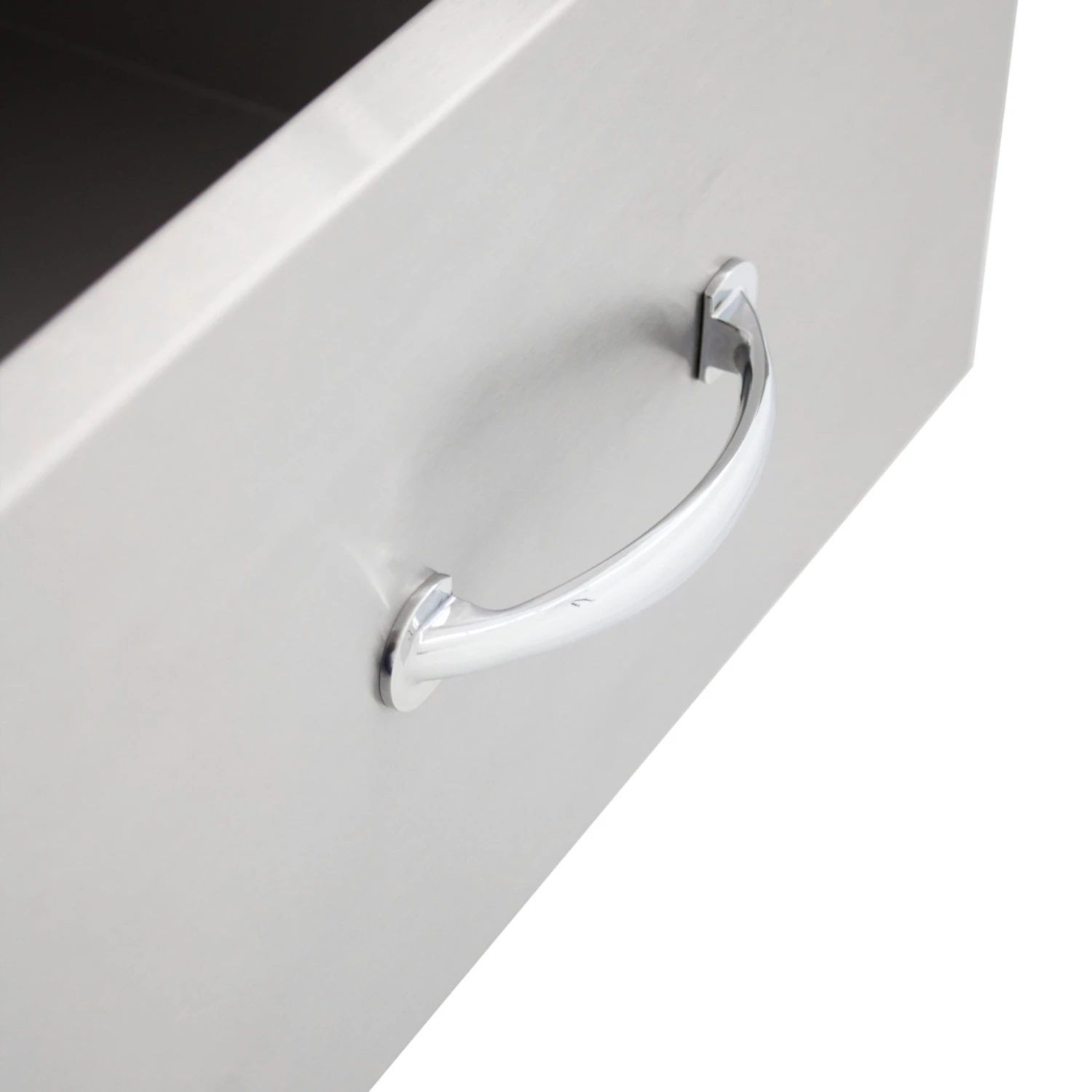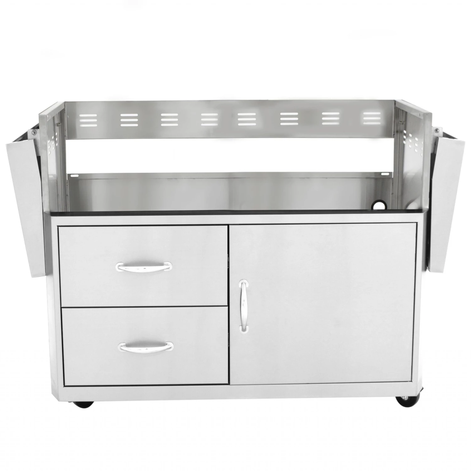The finest in outdoor cooking just got better with high-performance, industry-leading heavy-gauge materials and commercial quality craftsmanship in the Blaze Professional LUX. This all stainless steel grill cart is specifically designed to house the Blaze Professional LUX 4-burner gas grill and matches the sleek contours of the grill. The stainless steel construction ensures long-lasting durability for years of outdoor use and the four heavy-duty, locking wheels allow you to easily relocate the grill whenever necessary. The two stainless steel side shelves keep your BBQ tools at hand, provide a convenient work area while you cook, and fold down to save space while not in use.