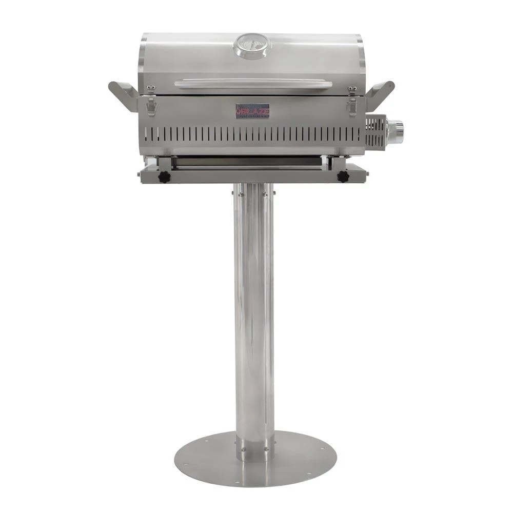 Blaze Outdoor Products introduces the Blaze 17″ Pedestal for the Professional Portable Grill. This stainless steel pedestal is specifically designed to house the Blaze Professional Portable Grill. Constructed from 304 Stainless Steel, the Blaze Pedestal resists rust and corrosion. The Blaze 17″ Pedestal for the Professional Portable Grill is also offered in a Marine Grade model that features a 316L stainless steel construction. This Blaze Pedestal has optional side shelves that provide valuable work space to your grilling area. The Blaze Pedestal also features a recessed foot-securing system for the 4 feet of the Portable Grill to rest securely in