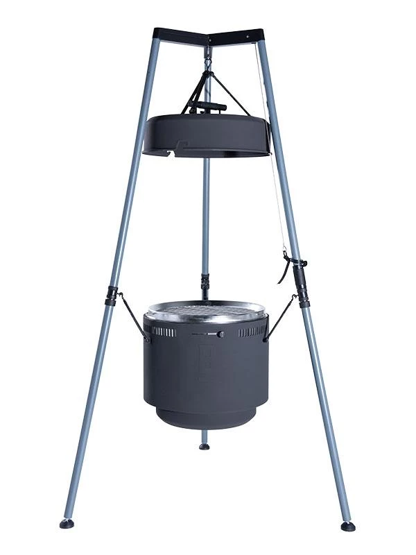 It’s become my go-to for camping (RVing) as I find the setup to be pretty efficient, and it becomes a big conversation piece and a very much multifunctional tool that allows me to cook dinner and then use the same coals to start the campfire for the evening; whether the barrel is suspended or on the ground. While it won’t be as smoke-less as a Solo Stove or the like, it does burn pretty clean and efficient. But what I like most, is that the double-wall design keeps the outside cool which is comforting with kids and dogs around.
