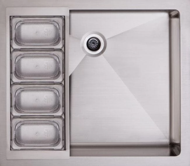 DCSGrills.com would like to introduce the new and exciting 25″ beverage chiller. Entertain your guests with professionally designed and culinary created Beverage Center. The 25” Beverage Chiller is a fully insulated compartment that can hold up to 17 gallons of ice to chill your refreshments. Its deep depth can comfortably sit long bottle neck beverages and wine bottles. The removable commercial grade condiment container is food safe to help prepare a buffet of cocktail accessories. The four individual containers and lids may be removed for cleaning / filling. Complete sealed gasket – Dry environment safe from rodents, pests and weather – Three removable drawer inserts to aid in easy clean- ability or portability – Two height adjusting racks to customize your storage needs. Additional features: – 304 grade stainless steel – insulated double walled professional construction – Can be plumbed to convert to an outdoor 25” sink. – Stainless steel lid included – Optional 1-liter bottle accessory holder (BC-BOTTLEAC-25)