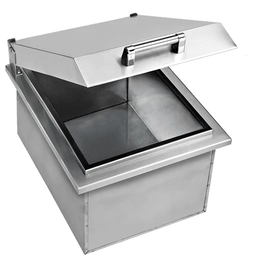 Entertain guests with this professionally designed ice bin cooler from Delta Heat. This 15-inch ice bin is constructed of 304 stainless steel. The fully insulated and gasket-sealed lid helps keep items cold for hours and can be removed if you want to use the cooler without the top. This ice bin features a 10-inch deep basin and brass drain with a plug. This ice bin is a great addition to your Delta Heat outdoor kitchen. Delta Heat products are designed and manufactured in the USA with pride.