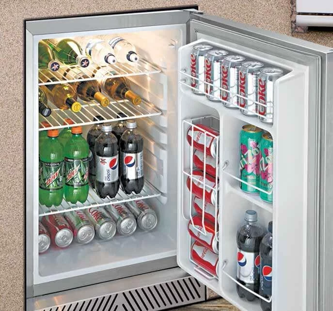 This Delta Heat outdoor refrigerator blends seamlessly into any outdoor kitchen while keeping beverages chilled to perfection. The 20-inch compact refrigerator is fully constructed of premium-grade stainless steel and features front venting allowing the refrigerator to be fully built into your outdoor kitchen. With 4.1 cubic feet of storage space, three (3) adjustable wire shelves, and door storage, this refrigerator has plenty of room for all your entertaining needs. Adjustable leveling legs are included to ensure your Delta Heat refrigerator sits evenly on any patio surface while a door lock provides security. This model is UL Certified for Outdoor Use. Requires 110 volts, 115 watts.