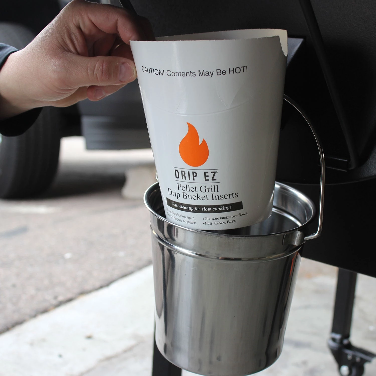 Place a liner in your grease bucket to collect drippings. Remove and replace for easy clean-up!