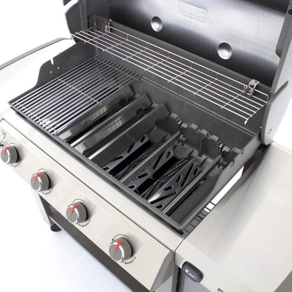 The 2019 Weber Genesis II gas grill raises the standard in backyard grilling with the GS4 high-performance grilling system, featuring continuous-spark Infinity ignition, revolutionary stainless steel high performance burners, stainless steel Flavorizer bars with flame view window and a Grease Management System.