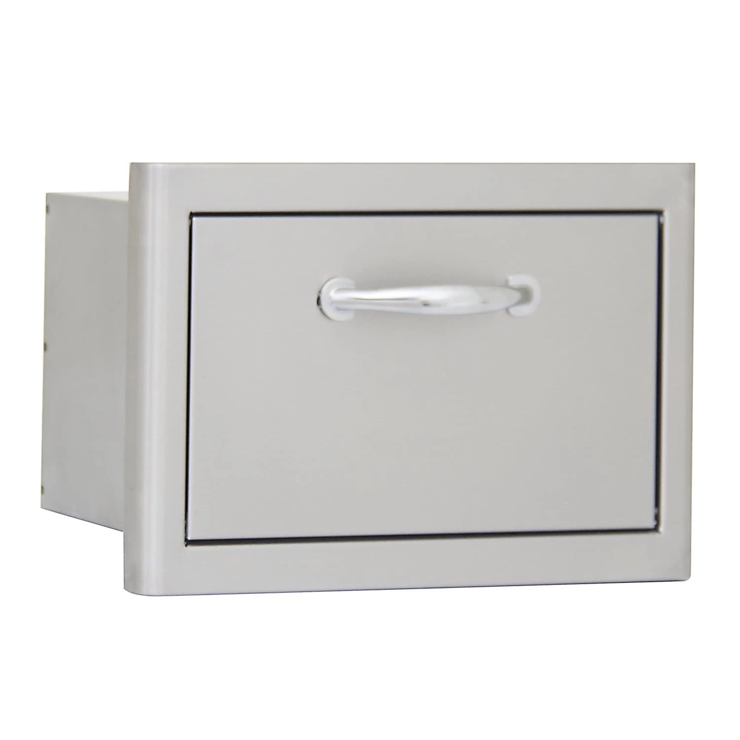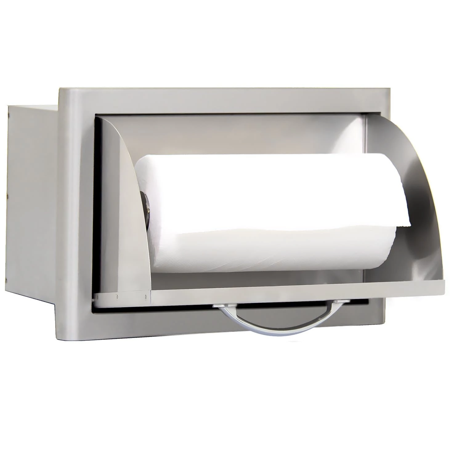 This Blaze paper towel holder features commercial grade 304 stainless steel construction to withstand outdoor elements and a unique completely rounded bevel design that enhances strength and durability. Conveniently store paper towels for easy access by simply pulling the door open. This quality outdoor kitchen paper towel holder is accented with a stylish curved handle. Blaze paper towel holders are the perfect storage solution for any outdoor kitchen!