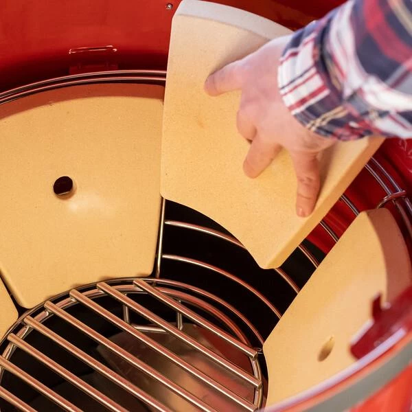 Kamado Joe® continues its innovation with the Kettle Joe™ – a 22-inch kettle grill with unique ceramic cooking features that improve heat retention, fuel efficiency, and smoking ability. The 2-Tier Divide & Conquer® system allows you to cook foods at different temperatures. The grill also comes with the revolutionary SlōRoller™ Hyperbolic Smoke Chamber insert, which harnesses the power of cyclonic airflow technology to control heat and smoke at smoking temperatures.