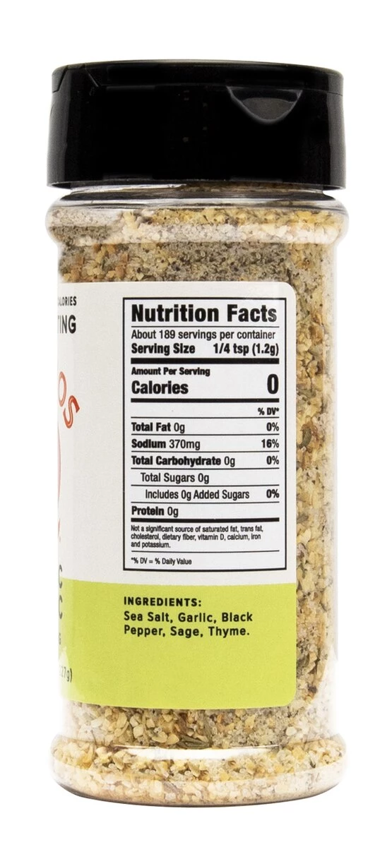 - Garlic & More Garlic: No other name would be quite as fitting as ‘Garlic Garlic’. This savory seasoning will be your go-to when you have a hankering for Italian, but don’t want to add the usual calories to your food creations. It will transform the healthy, low-calorie eating experience into a delectable flavor explosion. This blend of versatile spices is bold, flavorful goodness!