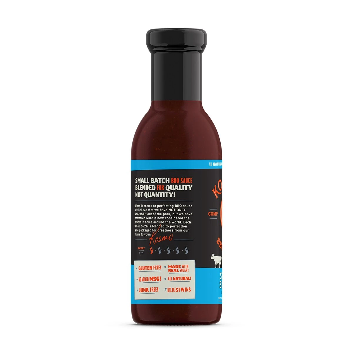 The name pretty much says it all. Hints of pineapple, ancho chili pepper, and garlic all partner with a natural savory smokiness to give your favorite meats that perfect smoky top-off. Bold, tangy, and sweet, it goes best with ribs and pork butt. Kosmos Q is the best and only way to truly get smoked out!