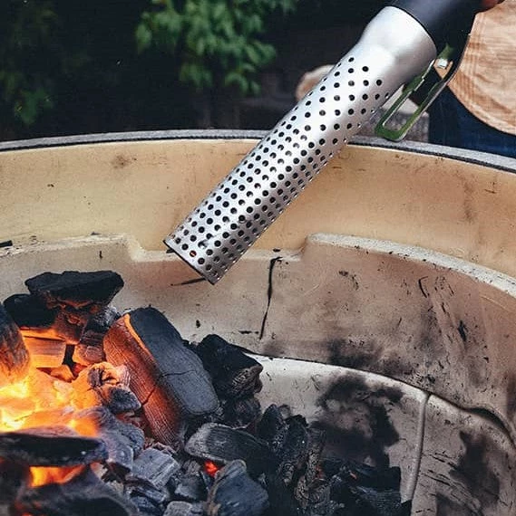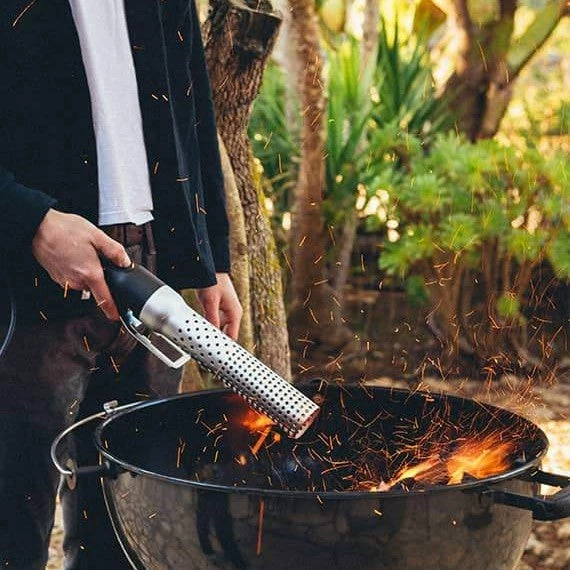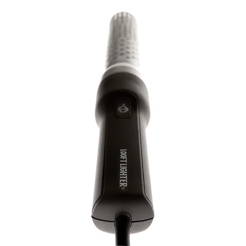 The Looftlighter is the perfect replacement for lighter fluid. The Looftlighter will ignite fires in a matter of seconds. When barbecuing, you can even use the Looftlighter to speed up the heating process of your coals so that your BBQ is ready for cooking in just a few minutes. The patented hot airstream process eliminates the chemical taste that infuses food on BBQs using lighter fluid and gas. The Looftlighter does not throw flames but instead blows a hot airstream at 1256 degrees Fahrenheit. The Looftlighter is fully equipped with a safety casing that cools to the touch within a few seconds after use. To use, simply plug the Looftlighter into a wall socket, and touch the nose of the lighter to your wood or coals. In about 15 seconds sparks will appear. At this point, withdraw the Looftlighter by 3-6 inches and continue heating the same spot. Before you know it, you will have a roaring fire. The length of the power cord is approximately 10 feet. There is also an integrated bottle opener at the foot.