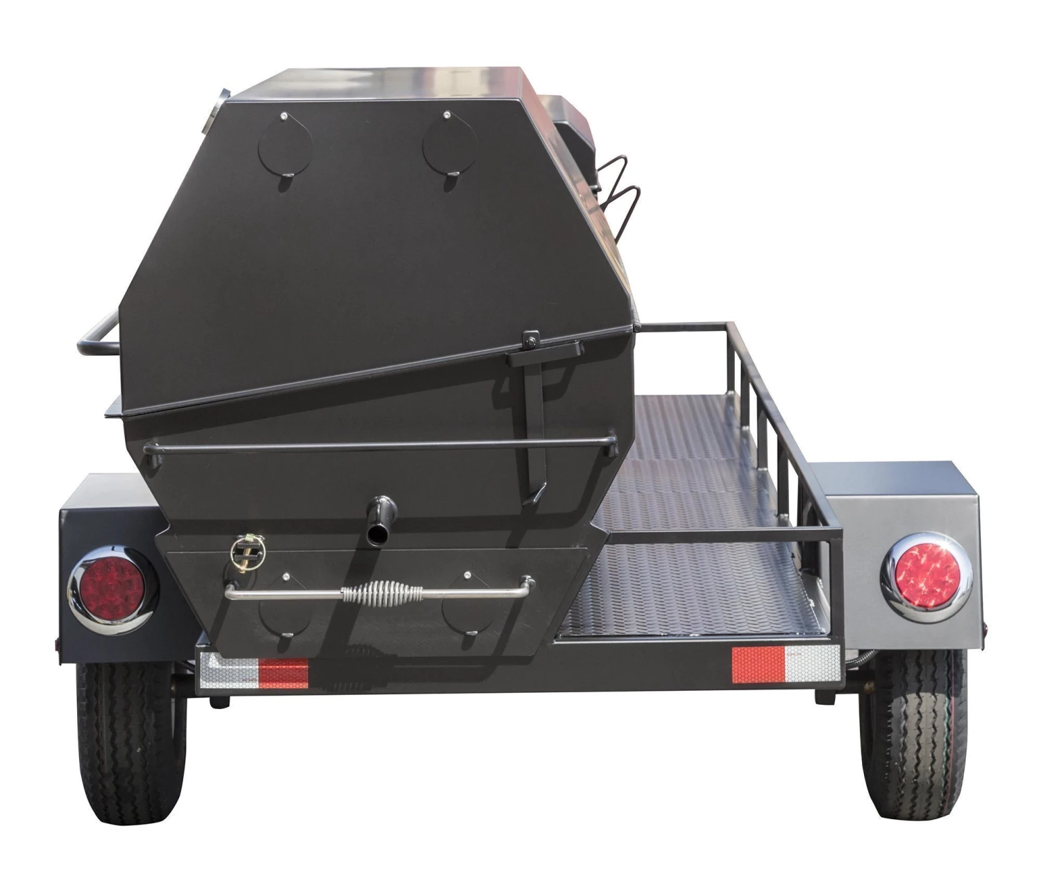 This unit is charcoal/wood-fired and features the PR60 Pig Roaster. The standard layout has the BBQ42 in the back facing the rear of the trailer. Add 10% to the base price for an alternate layout, such as the BBQ42 and Pig Roaster in parallel.