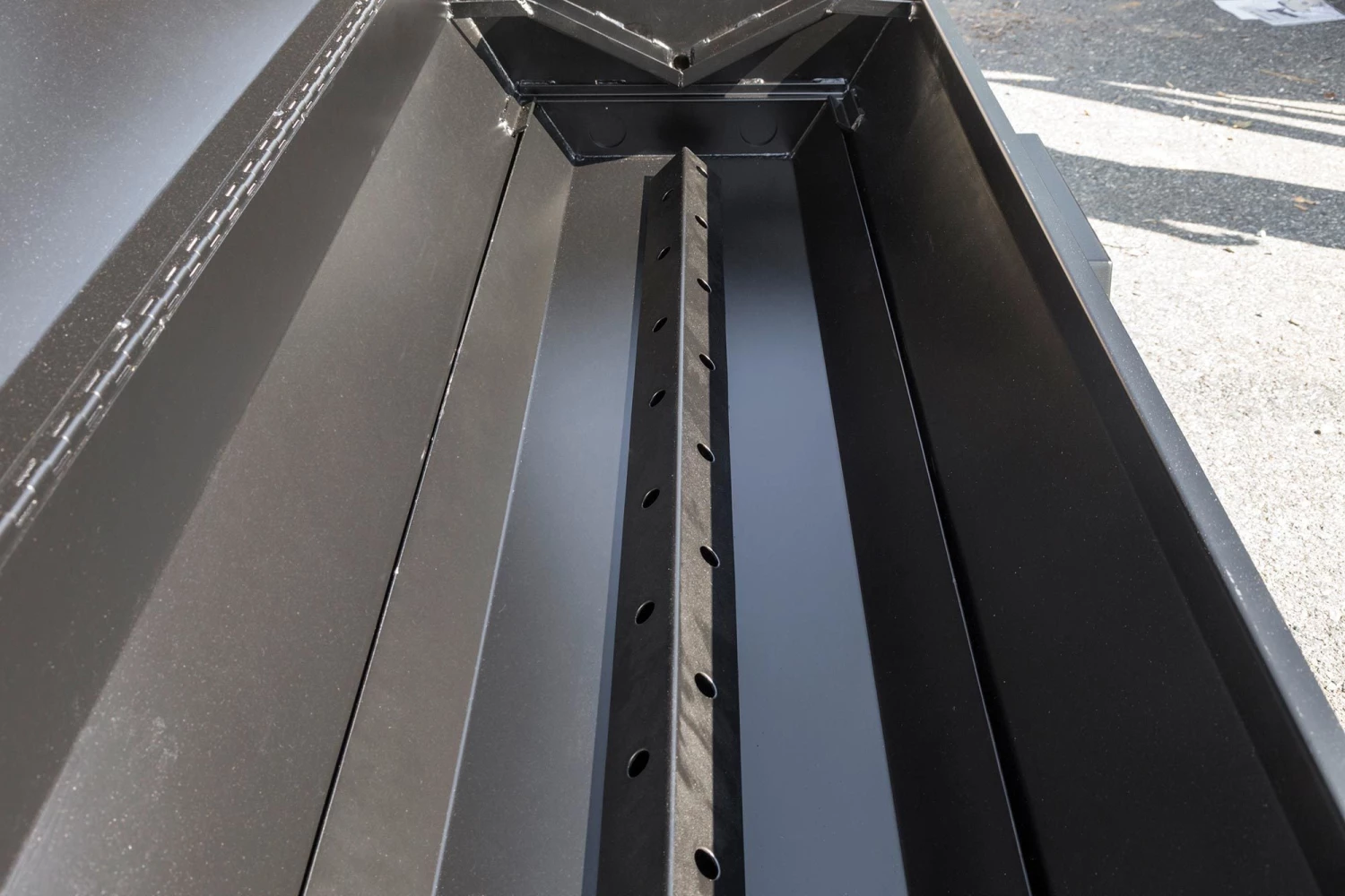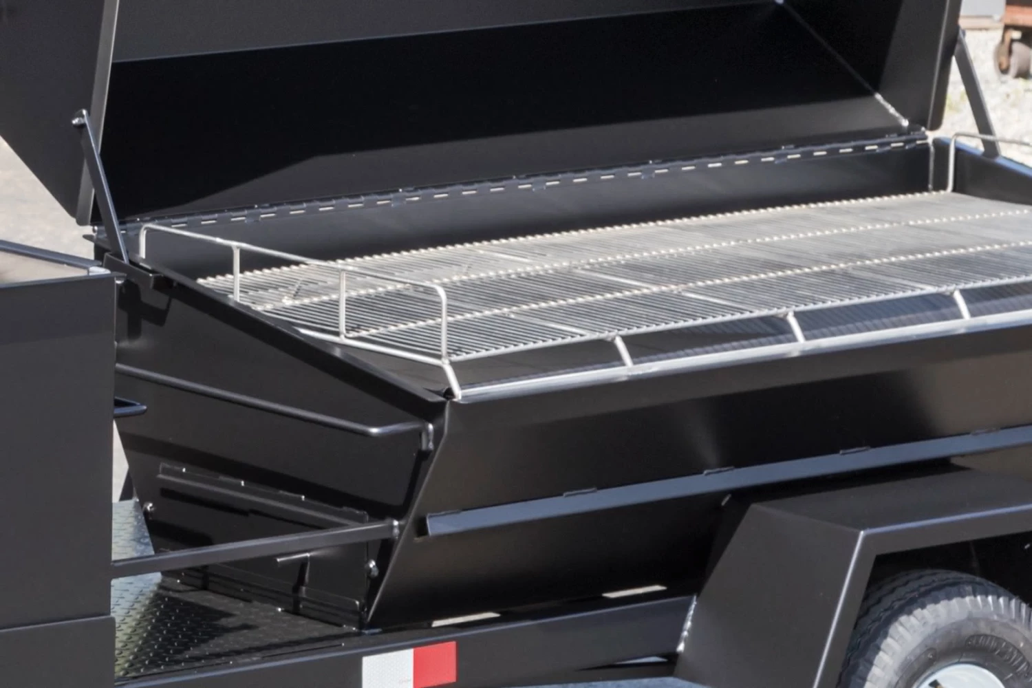 Besides whole pigs, this pig cooker can handle anything you’d do low and slow in a regular smoker, including 30-35 pork butts with the second-tier grate. Wood or charcoal-fired.