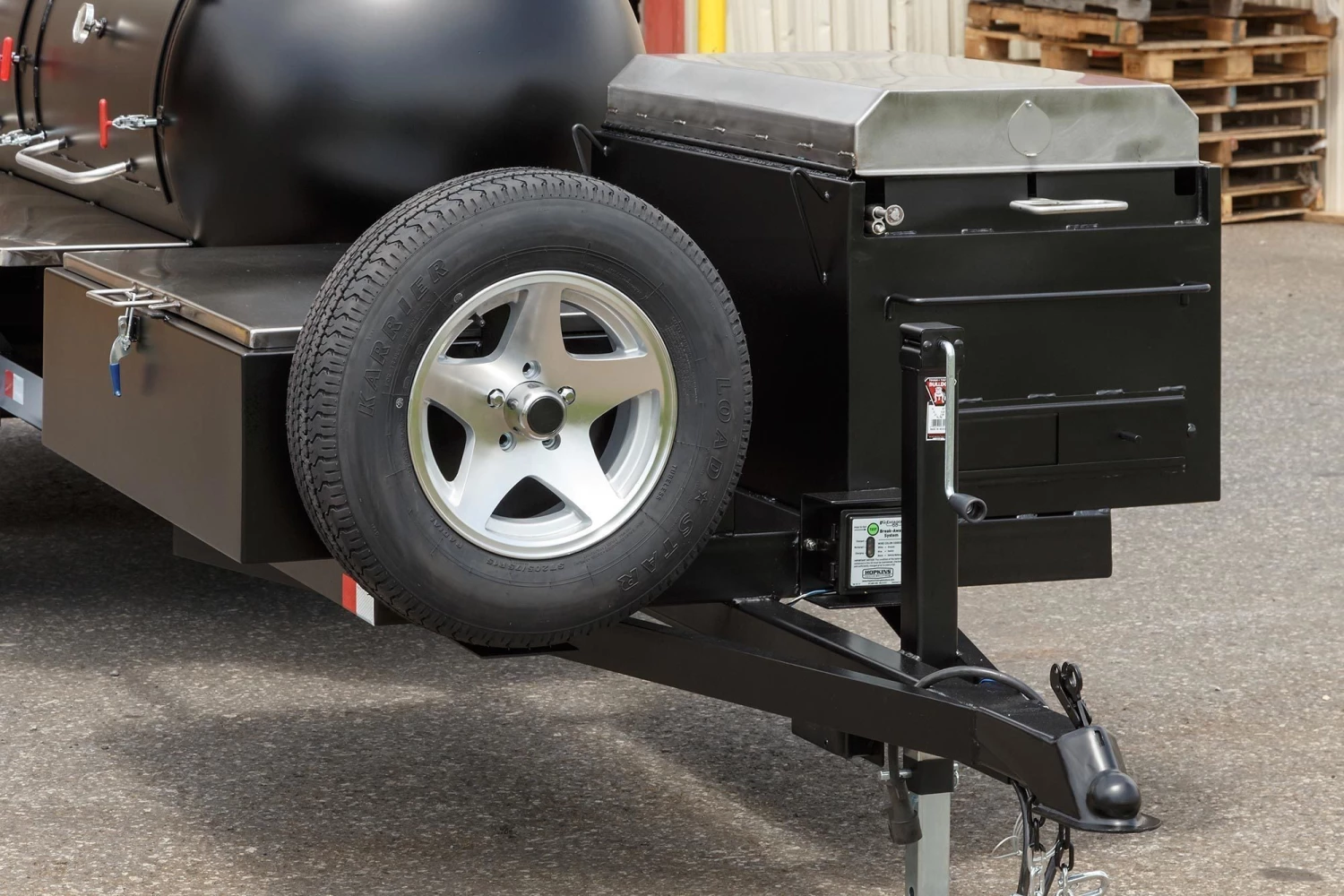 This TS500 Price includes Tandem axle with brakes, Trim for tandem, live smoke in warmer, Stainless lid for woodbox hinged, Spare tire trim package, Extra Shelf in warmer, Outside stainless shelves, and the Freight Fee.