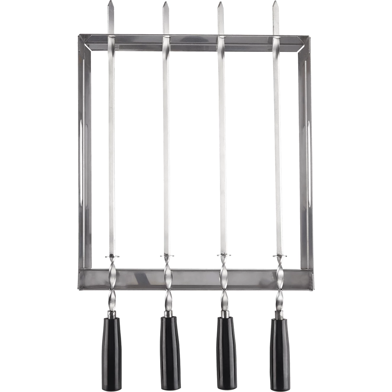 Never loose your kebabs through the grids, or to sticking again. Napoleon’s PRO Series Stainless Steel Rotating Skewer Rack takes homemade kebabs to the next level. The stainless steel raised tray elevates your skewers off the cooking grids allowing airflow and even cooking. The flat design prevent your food from spinning on the skewer itself, and with the easy pushing or pulling motion you can rotate those delicious sticks of food for easy basting and even grilling. The heat resistant handles stay cool outside the grill while everything else gets grilled to perfection, and the PRO Series Stainless Steel Rotating Skewer Rack holds four kebabs, so you can feed a hungry family easily. What’s In The Box Each Napoleon PRO Series Stainless Steel Rotating Skewer Rack comes complete in the box with the commercial grade stainless steel skewer rack itself, and four stainless steel skewers with heat resistant handles.