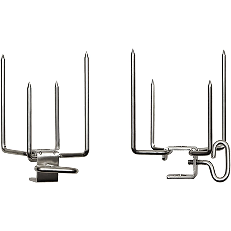 You can grill more than one piece of meat on the rotisserie at once with the Napoleon Commercial Quality Rotisserie Forks. They come with two 4-pronged forks that slide easily to hold your meat in place and thumb screws to hold the forks on the spit. These Rotisserie Forks are made entirely of stainless steel, cleaning easily after use. Replacement forks for and rotisserie with 12mm hex rod or 8mm square rods.