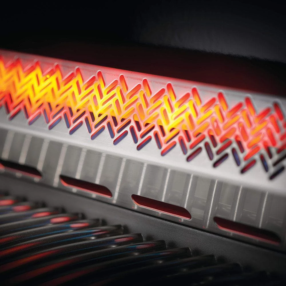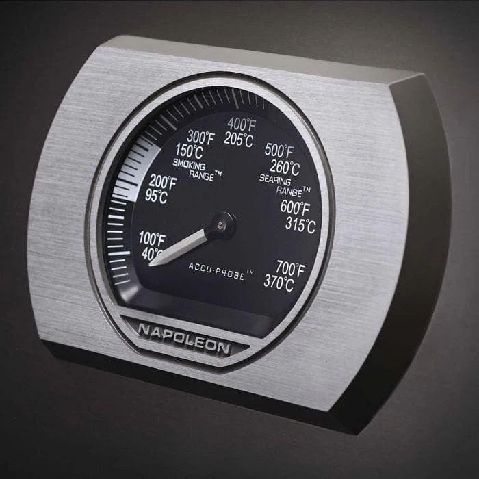 The Napoleon Prestige 665 brings engineered quality and economical price to your grilling experience. This freestanding propane gas grill has four stainless steel tube burners that provide up to 60,000 BTUs of cooking power. The grill has stainless steel cooking grids with 665 square inches of main cooking area and 447 square inches across the plated steel warming area for a total of 1142 square inches of cooking area. The Napoleon Jetfire ignition with crossover lighting starts each burner individually for a reliable start-up every time and allows you to light all the burners at the same time. The stainless steel wave cooking grids create the trademark Napoleon sear lines and allow for better heat retention. The dual-level, stainless steel, sear plates vaporize drippings, control flare-ups, and keep your food moist. This Prestige 665 also has an 18,000 BTU rear infrared burner and rotisserie kit for roasting and a 14,000 BTU infrared side burner for searing meats. The hood features an Accu-Probe temperature gauge, cast aluminum end caps, and retains heat for oven-like performance. The SafetyGlow control knobs turn from blue to red when a burner is in use. Clean up is a cinch with the full-width removable drip pan. The stainless steel grill cart features folding shelves with integrated utensil holders, double doors for storage, and easy roll locking casters for moving the grill around. This Napoleon grill is manufactured in Canada.