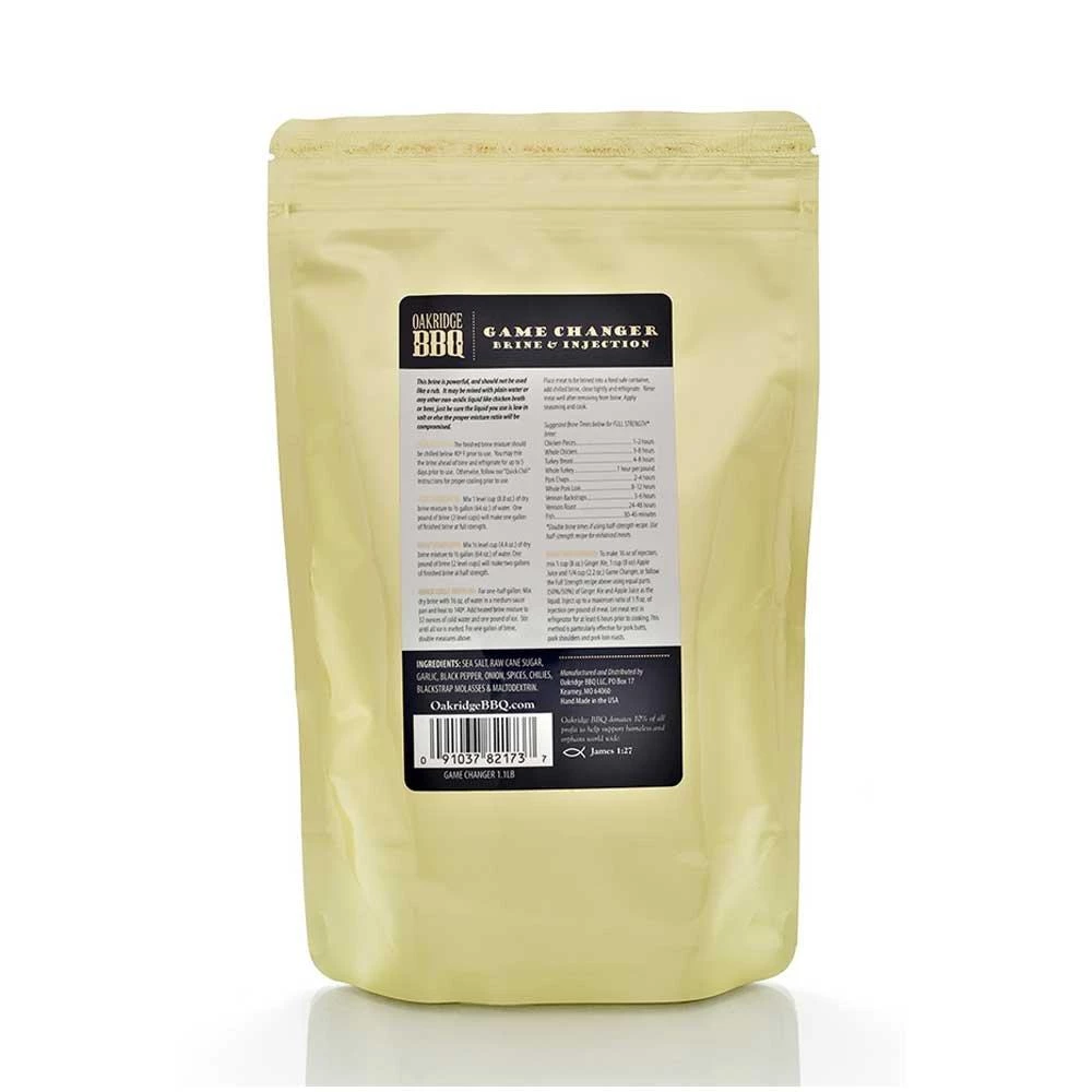 Game Changer Brine & Injection has accounted for literally hundreds of Top Three chicken awards and multiple Grand Championships all around the world! One 1.1 pound package of brine mix will make one gallon of finished brine at full strength or 2 gallons at half-strength. Available in 1.1 & 2.2 lb stock sizes, with 5, 10 and 25 lb bulk sizes also available.