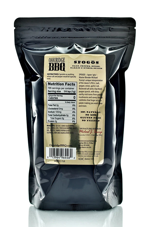 SPOGOS (pronounced /spaw ‘gOs/), is Master Blender Michael Trump’s unique interpretation of the classic SPOG (salt, pepper, onion and garlic) rub. Balanced salt and a big black pepper punch, with deep earthy and umami mid-tones from porcini mushrooms and savory herbal subtleties that linger on your palate making you want more and more.