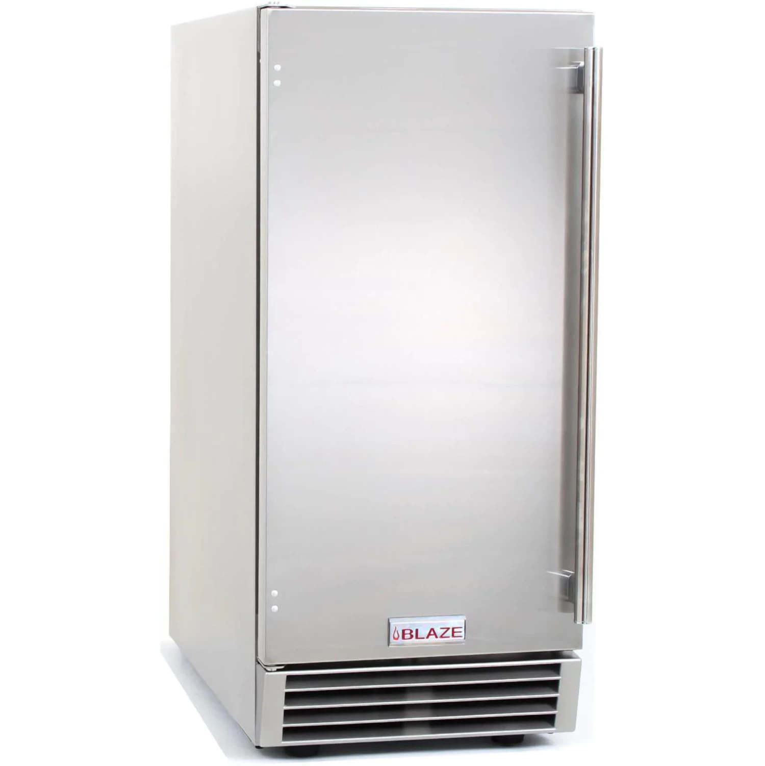 Outdoor entertaining is more enjoyable and convenient when you have everything in your outdoor kitchen. The unit is made from durable stainless steel and features a reversible door to suit your specific needs. The Blaze outdoor ice maker can produce up to 50 pounds of cube ice per day and can hold 25 pounds in its removable bin. Inside the ice maker, a cool blue LED illuminates the contents, making things easy to see. The ice maker also includes a self-cleaning mode and a convenient one-button operation. The Blaze ice machine features an in-line water filter that filters out impurities, ensuring the ice production is free of contaminants. The front venting design allows it to be used in a built-in application, or it can be used as a freestanding unit. The bottom of the ice maker is equipped with four leveling legs for a perfect fit. It operates on an environmentally friendly R134a refrigerant, carries an Energy Star rating and UL listing for outdoor use. This ice maker includes a stainless steel ice scoop, drain line, and waterline.