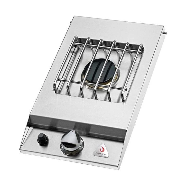Complete your Delta Heat outdoor kitchen with this premium quality side burner. This Delta Heat single-side burner has a heavy-duty 16,000 BTU burner that is sealed to protect against the elements. This durable side burner is constructed of 304 stainless steel and the drop-in style makes it an easy installation into your outdoor kitchen. The side burner features an electronic ignition system for easy lighting, and a matching stainless steel cover is included to protect the burner when not in use. Delta Heat products are designed and manufactured in the USA with pride.