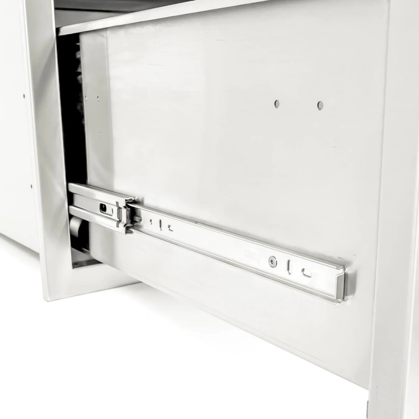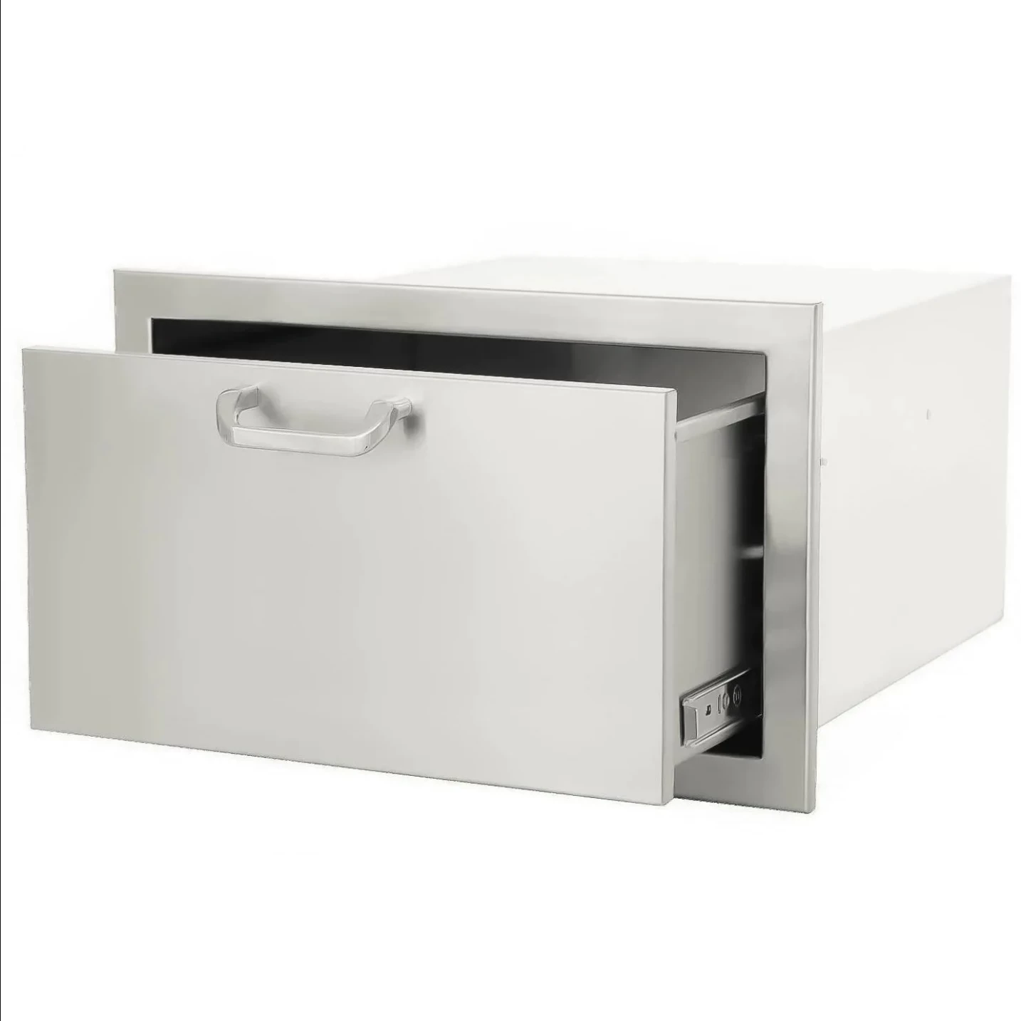 The PCM 260 Series 30 X 15-Inch stainless steel single access drawer is constructed with a 20 gauge, 304-grade stainless steel frame, and number 4 brushed finish. Unit is flush-mounted, and the drawer glides use heavy-duty, commercial-grade ball bearings on full-length drawer tracks for easy opening and closing. An access drawer is the perfect outdoor kitchen accessory for any outdoor BBQ island, adding storage space for your tools and spices. The Traditional handle requires installation on the access drawer.Â