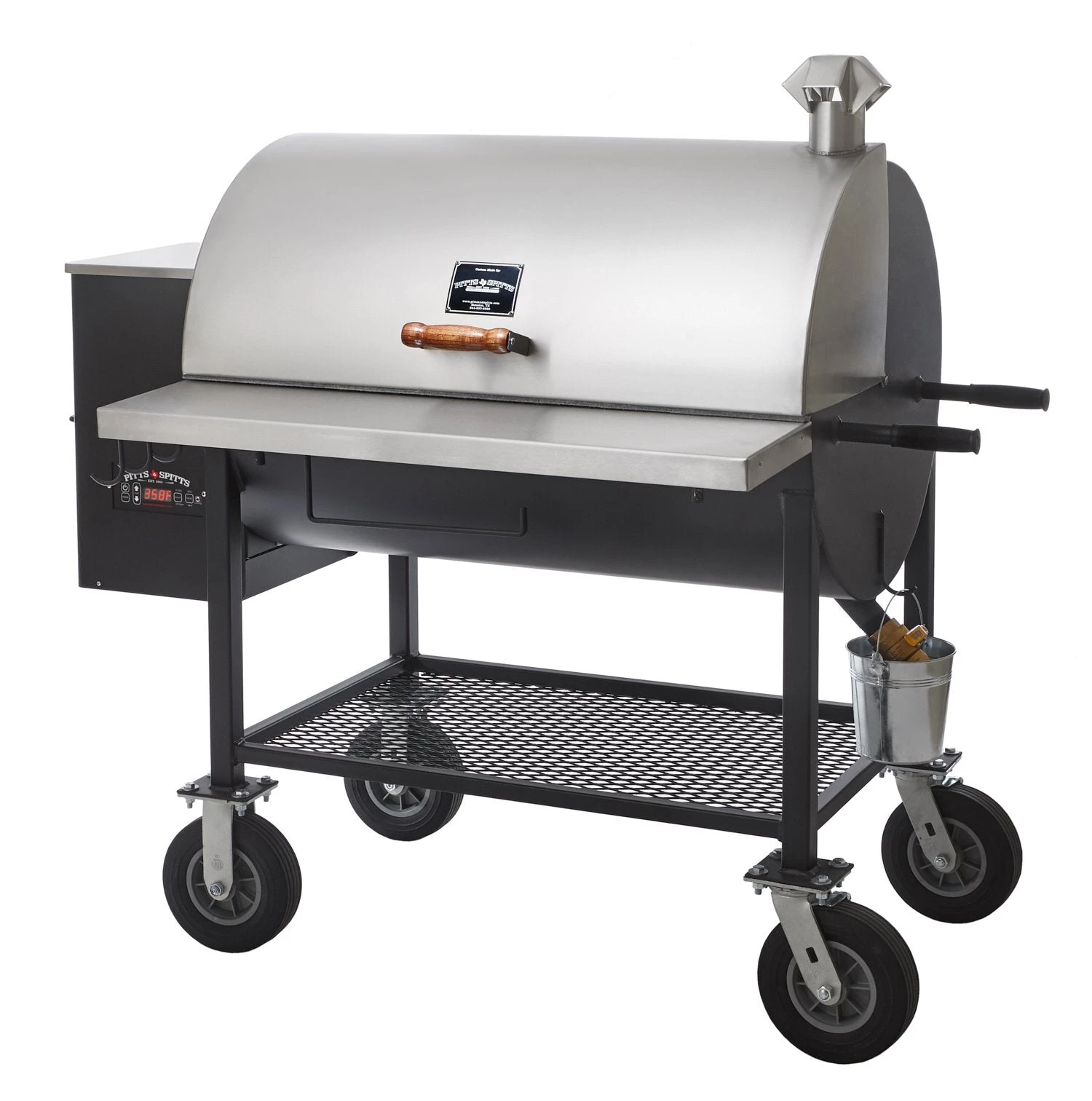 The carbon steel cooking chamber is made of 7 and 10 gauge carbon steel. This grill comes standard with our signature 304 stainless steel lid and work shelf.