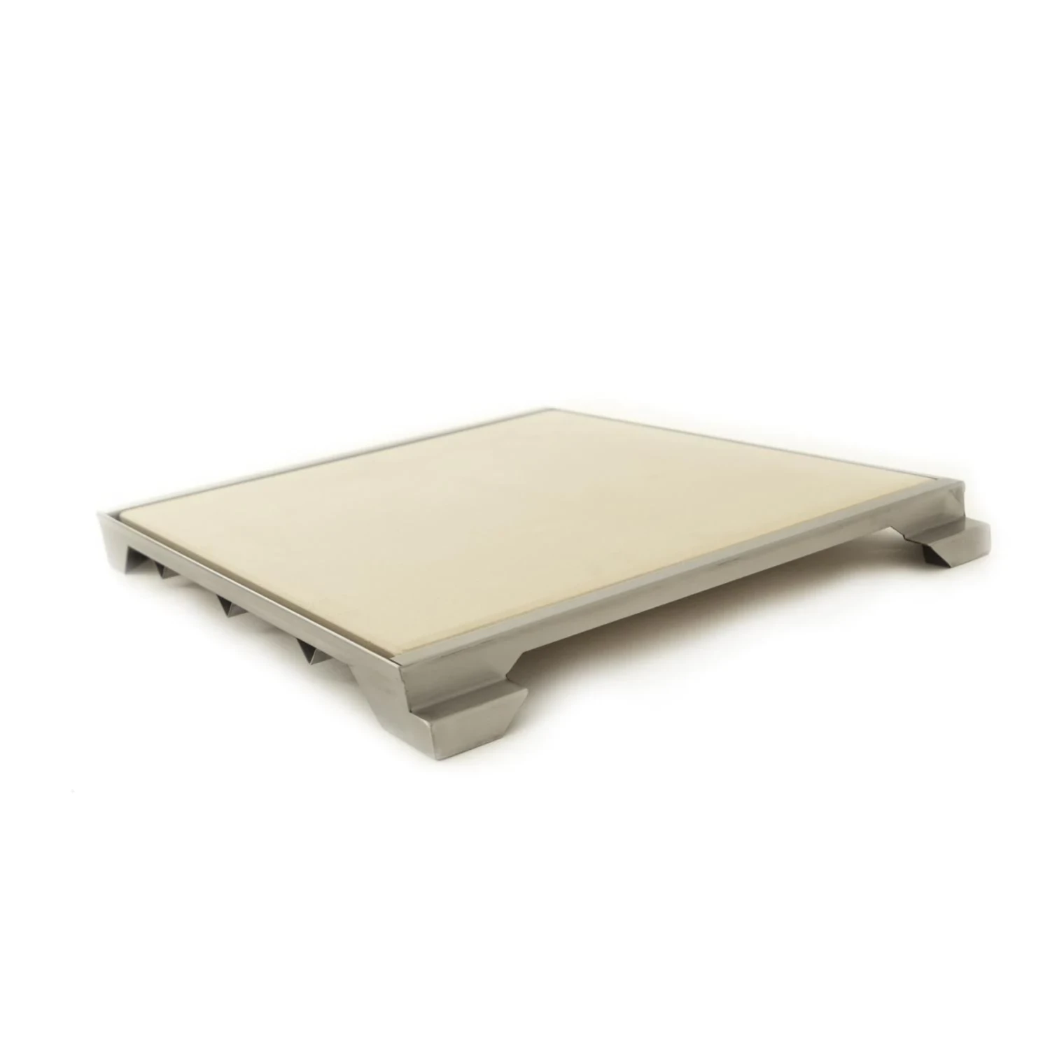 Have your own backyard pizza party with a pizza stone from Blaze Outdoor Products. This 15-inch pizza stone is made from high-fired refractory ceramics and has a stainless steel tray that elevates the stone, so you can evenly bake a pizza or even desserts! This stone is specifically designed for Blaze Professional LUX grills. The tray sits on the ledges inside the grill where the cooking grates sit. The cooking grid must be removed to set this tray on the ledge. It can also rest on top of the cooking grids of other brands of gas grills. The stone is resistant to thermal shock so it will not crack if exposed to extreme temperature changes.