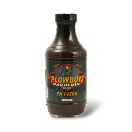 Plowboys BBQ En Fuego (“On Fire”) BBQ Sauce is the kicked-up cousin to Plowboys BBQ Sweet 180 BBQ sauce. This sauce starts off sweet and finishes with a kick. Pair this with Plowboys Yardbird or Bovine Bold rubs for a meal full of Plowboys flavor.