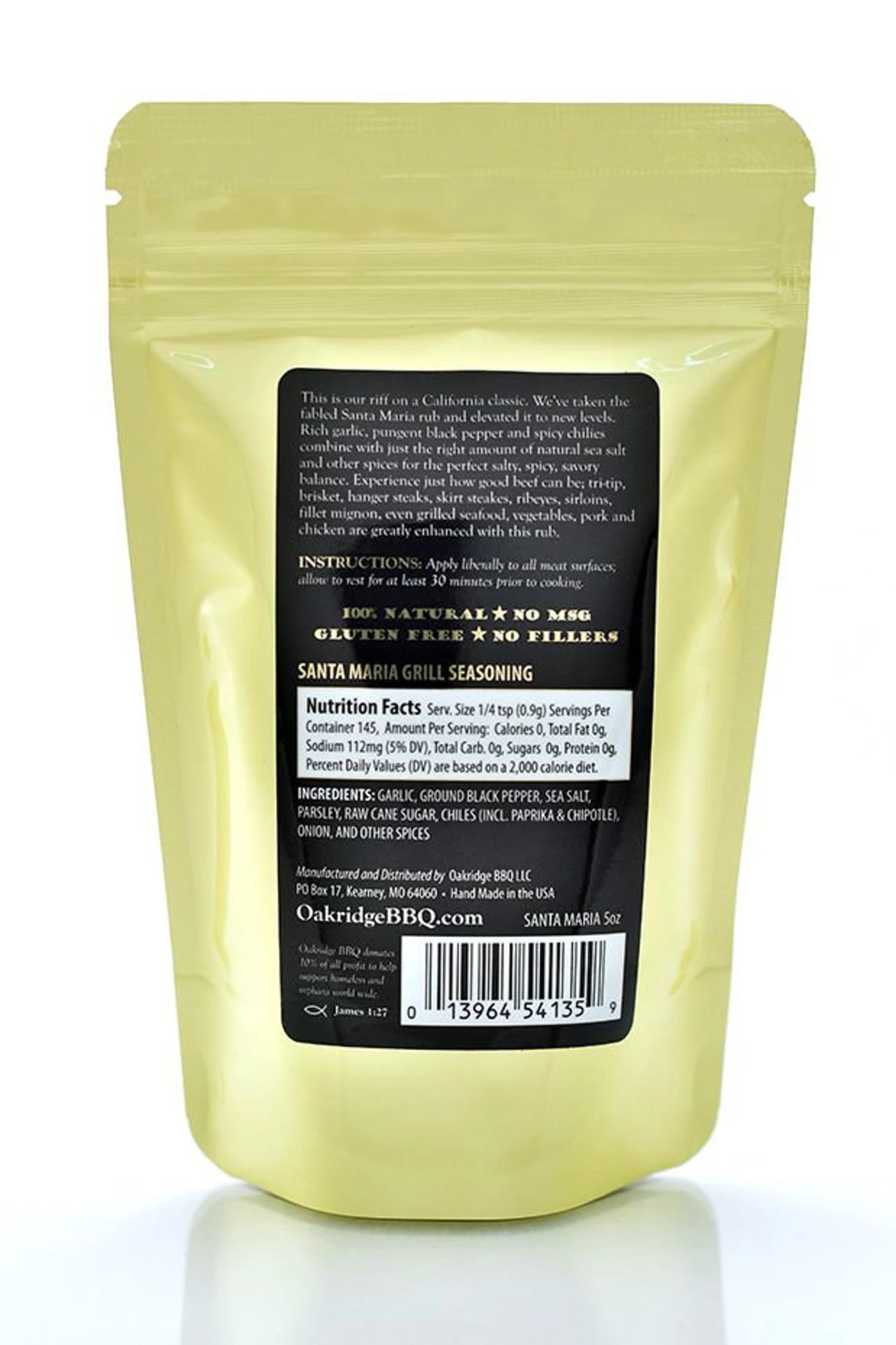Oakridge BBQ Santa Maria Grill Seasoning is our riff on a California classic. We’ve taken the fabled Santa Maria grilling seasoning and elevated it to new levels never imagined. Rich garlic, pungent pepper, and spicy chilies combine with just the right amount of natural fine flake sea salt and other special herbs and spices for the perfect salty/spicy/savory balance. You’ve never experienced just how good beef can be until you’ve tried this rub on your favorite steak. Tri-tip, brisket, hanger steaks, skirt steaks, ribeyes, sirloin, or fillet mignon. But, don’t stop there, even seafood, vegetables, pork & chicken, soups, stews, and just about everything else is greatly enhanced with this rub.