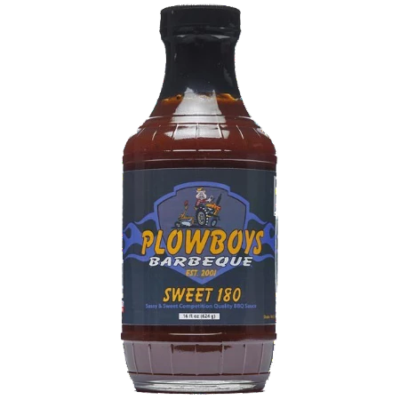 Plowboys BBQ Sweet 180 BBQ Sauce is the sweet and mild cousin to Plowboys BBQ En Fuego (“On Fire”) BBQ sauce. This sauce has complex flavors and great glazing properties. Pair this with Plowboys Yardbird rub for a meal full of Plowboys flavor!