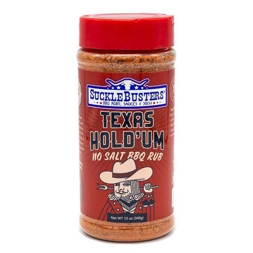 Looking to control your salt intake or want to be able to adjust the saltiness in your BBQ Rub? Texas Hold ‘Um No Salt has zero added salt. It is sweet, smoky and flavorful. We used plenty of smoked paprika for a great red color and smoky flavor. This rub works well right out of the bottle, no salt needed! Medium Heat.