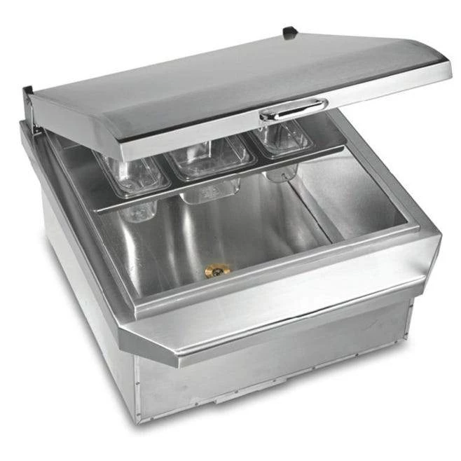 This premium, party-ready drop-in cooler accommodates up to 60 bottles and 25 pounds of ice. The insulated bin and gasket-sealed lid keep contents ice-cold into the wee hours. Sleek, geometrical design shows off Twin Eagles signature polished accents and seamless welds.