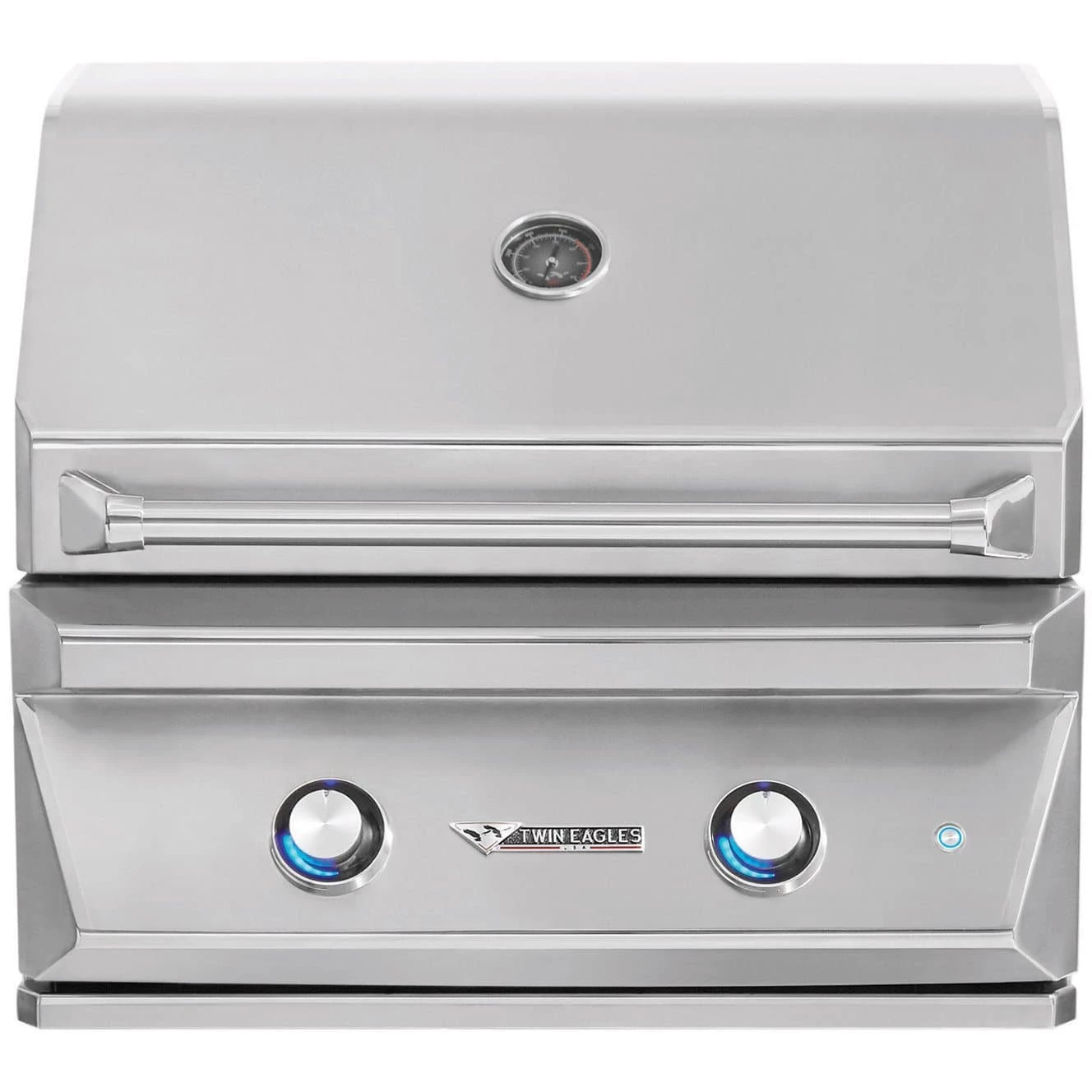 Twin Eagles has mastered the secret sauce in grilling perfection with their innovative Five-Part Grilling System that is designed for the ultimate grilling synergy. Twin Eagles gas grills feature premium-grade stainless steel with seamless heli-arc welded construction for maximum strength and durability. The double-lined hood with hidden heavy-duty lift extension springs provides better durability, more insulation, and reduces the weight to make it easier for you to open and close. The Exclusive Control Illumination control knobs feature a highly visible, graduated indigo blue line and a control indicator notch that illuminates to give a precise control setting. This 30-inch grill has one (1) 25,000 BTU 14 gauge 304-grade stainless steel main burners with zone dividers letting you independently control the heat, one (1) 25,000 BTU infrared sear burner, and high-quality ceramic briquette flame tamers that distribute the radiant heat more evenly across the cooking surface. The 3/8 inch stainless steel hexagonal cooking grates offer more food-to-surface contact and allow more heat to be conducted into your food generating deeper and thicker restaurant-style sear marks. The two-position heavy-duty rotisserie system has a fully integrated infrared rotisserie burner and motor with 100 pounds turning capacity and a chain-driven design providing consistent and uniform rotation of the rotisserie rod. The rotisserie rod conveniently stores in the drip tray handle when not in use. This grill has a reliable hot surface ignition, interior lights with a hood-activated light switch for nighttime grilling, a three-position warming rack that conveniently stows away when not in use, and a large capacity sealed smoker box. Twin Eagles offers several unique features that together deliver unparalleled performance. Twin Eagles products are designed and manufactured in the USA with pride.