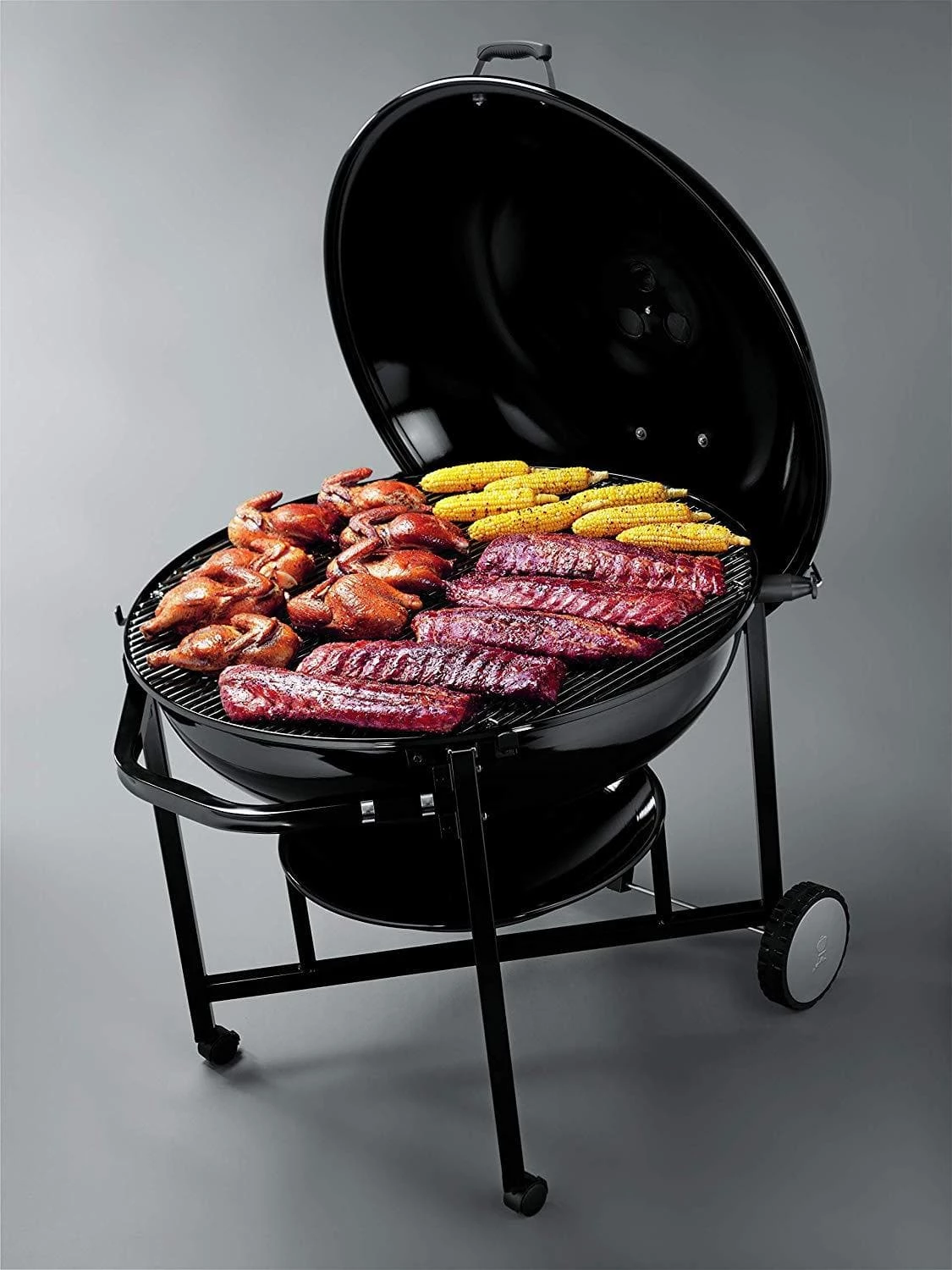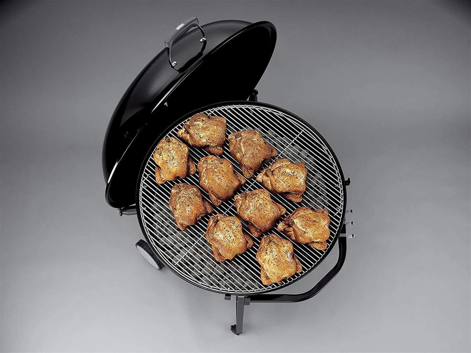 The enormous capacity of the Ranch® kettle charcoal grill sets the tone for a party that lasts until tomorrow. With more than 1,000 square inches of grilling space and a stainless steel hinged cooking grate for easily adding charcoal, you’re set up to grill for the masses.