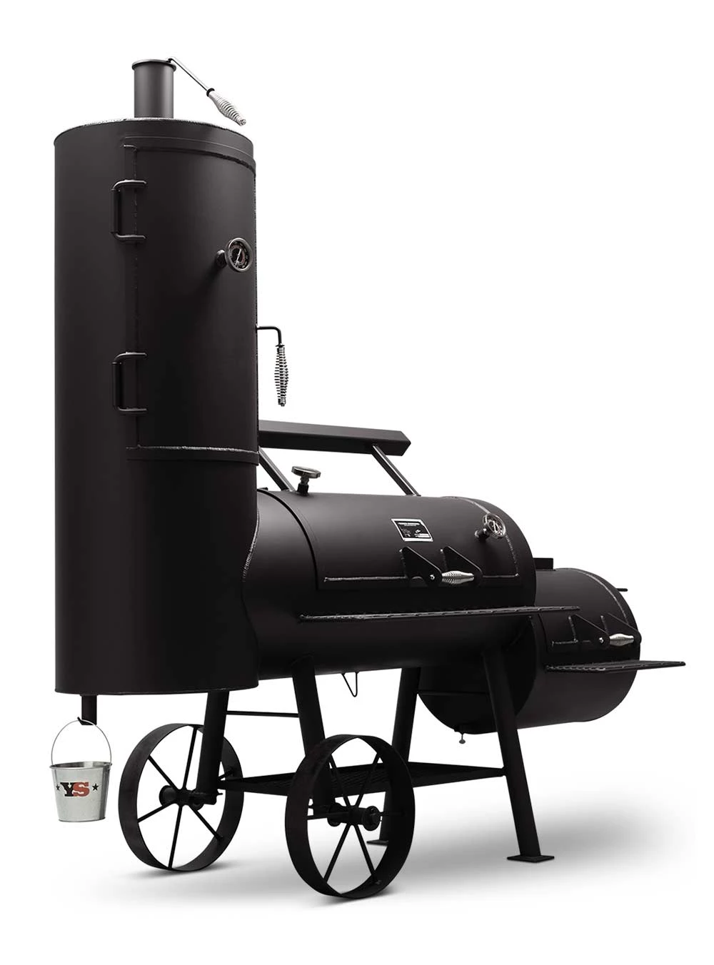The Yoder Smokers 20″ Loaded Durango packs a ton of cooking space into a small footprint. With the vertical chamber, you gain four 18.75″ diameter cooking grates. Combine this with the 39″ x 19″ main grate and the 19″ x 33.5″ second shelf you have over 1,900 square inches of cooking space.