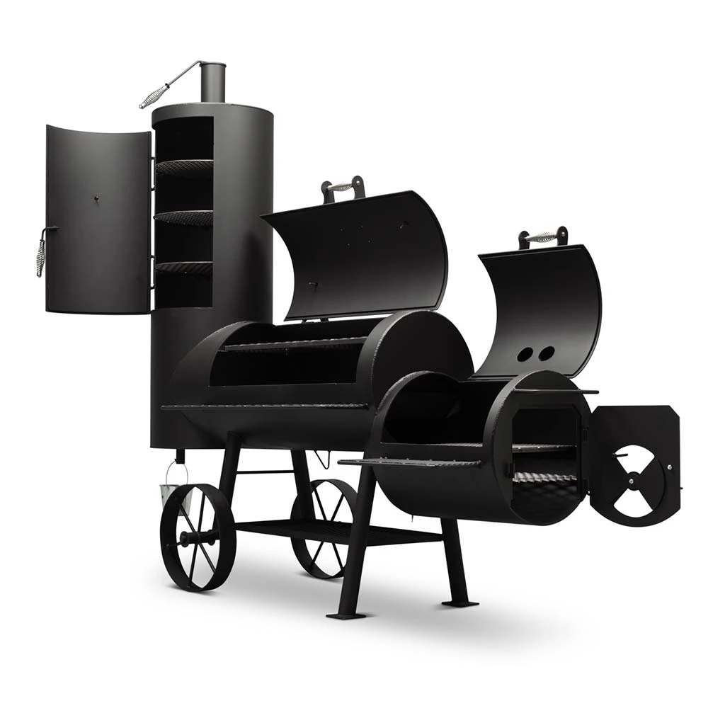 This means that you can slow smoke sausage, cheese, fish & jerky in the vertical chamber, while smoking ribs, pork, brisket & chicken in the horizontal chamber and, if you want to get really crazy, grill steaks, burgers, and hot dogs in the firebox all at the same time.
