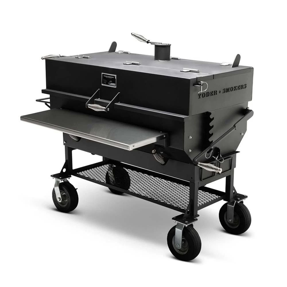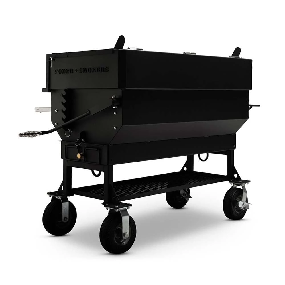 The popularity of cooking over charcoal has steadily increased over the past 10 years, and to meet that demand, Yoder Smokers has introduced large format charcoal grills that cater to the folks cooking for a crowd as well as those in the backyard. This 24×48″ grill boasts 1,152 square inches of cooking surface and heavy-duty American-made construction. Key features cooks will immediately appreciate include the variable height charcoal basket, ability to cook indirectly, and the custom stainless steel front shelf. And mounted on casters with 8″ pneumatic tires, this grill makes short work out of position on the patio or venue.